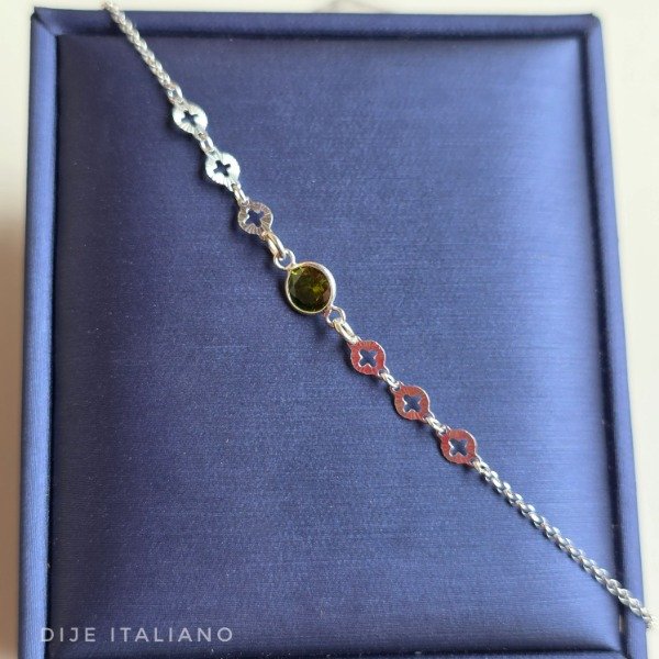 Pulsera italiana piedra central verde musgo