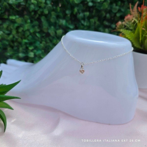 tobillera italiana ext 26 cm dije corazón colgante blanco