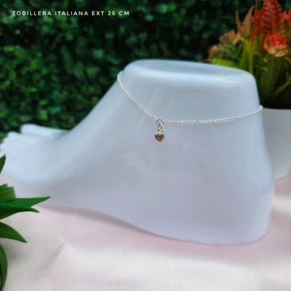 tobillera italiana ext 26 cm dije corazón colgante rosada
